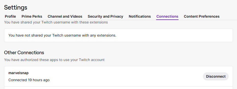 - If you see "MARVEL SNAP" as the connected app, this means you are linked to an older version of the game. You need to disconnect this and then sign out of Twitch. If you are seeing "marvelsnap" as the connected app, it means you have successfully connected your account.